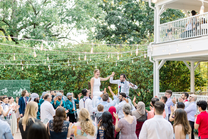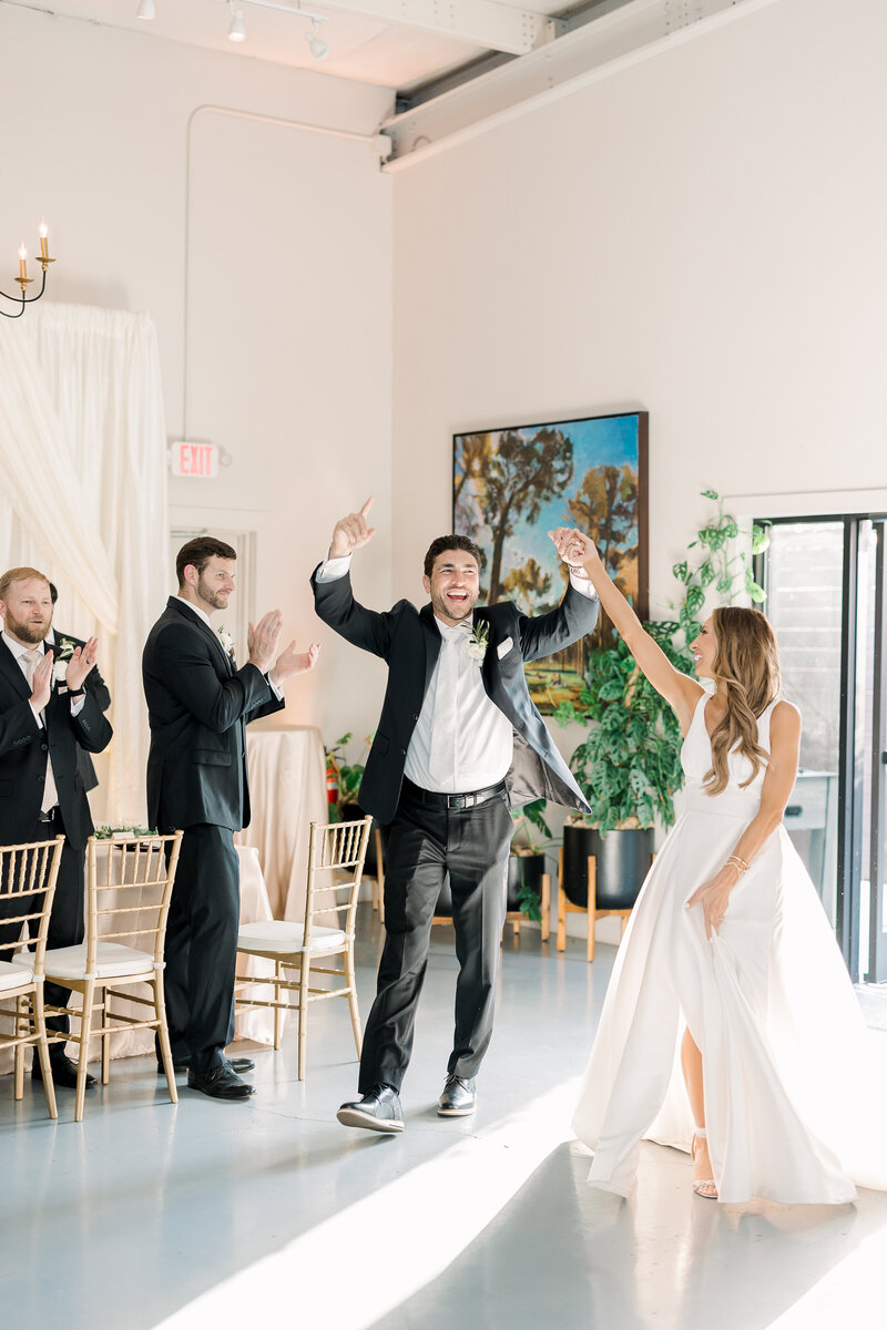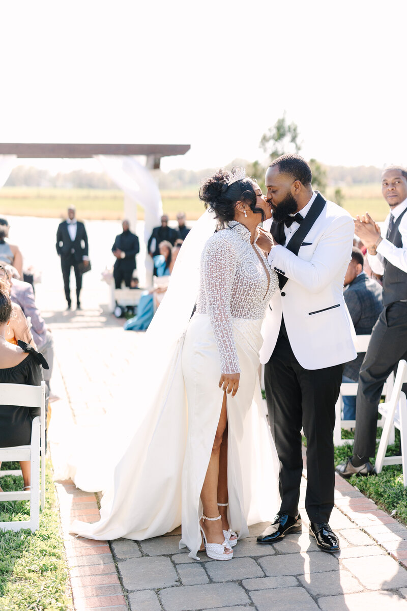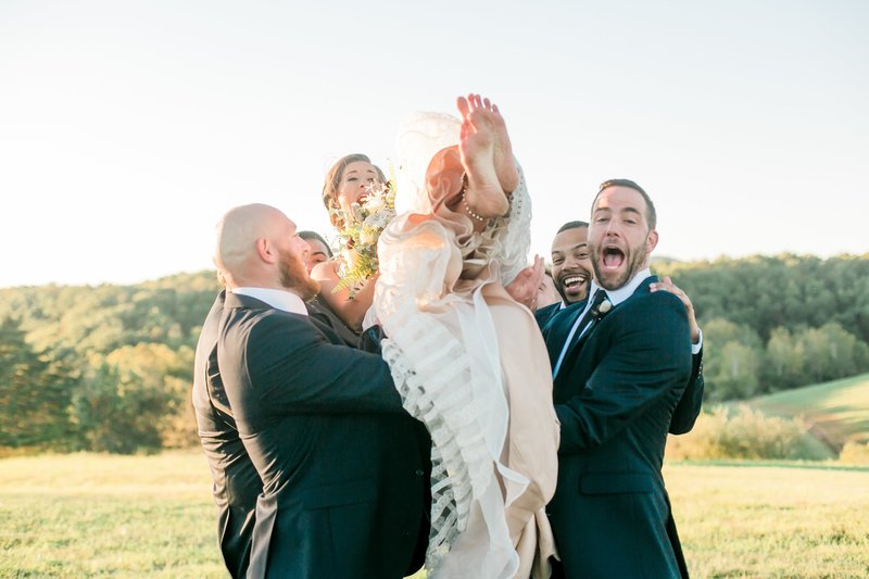 When there is no first look, the majority of the pictures have to be taken after the ceremony. Family pictures are generally done as soon as the ceremony ends because it’s the easiest time to round everyone up. Next up is full bridal party, and then bride and groom portraits. This generally runs into cocktail hour.