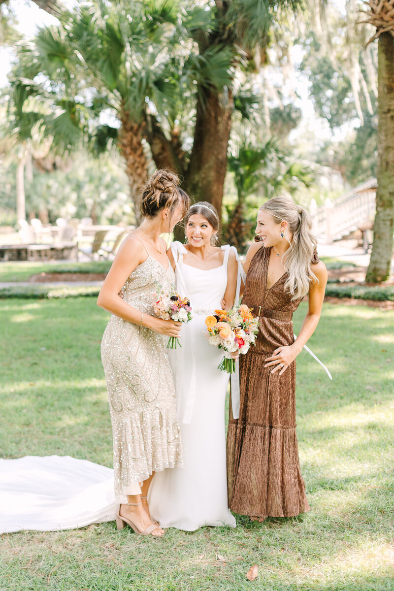 A first look opens up time prior to the ceremony for full bridal party pictures and, sometimes, for a few bride and groom portraits (although we prefer to do bride and groom portraits at sunset). This allows the couple to get the most out of cocktail hour, which makes the rest of the evening feel less rushed.